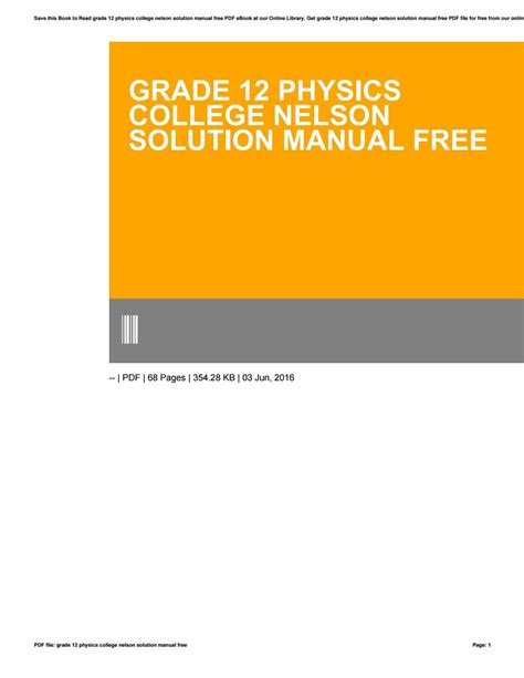 Read Online grade 12 physics college nelson solution manual Library Binding